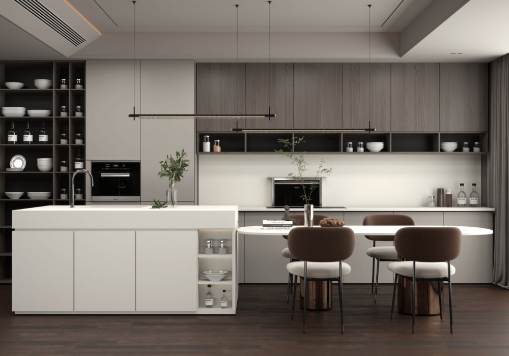 For a cozy, rustic kitchen look, wood-look porcelain tiles are a perfect choice. They bring warmth to modern kitchens while being water-resistant and easy to maintain.